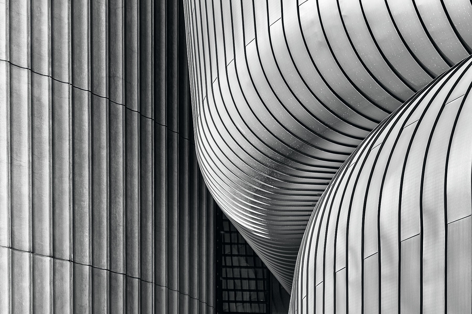 Abstract black and white, fine art image of the Deakin University, Melbourne designed by architect Woods Bagot by the photographic artist, Anthony Weller