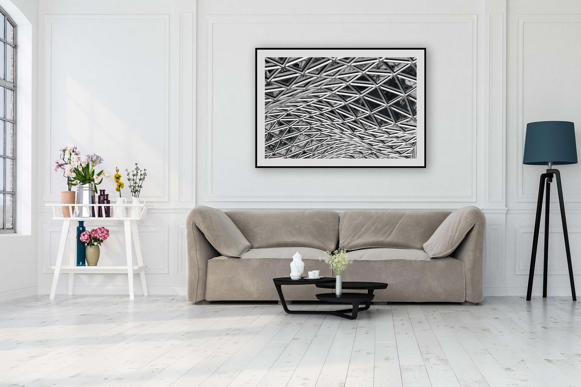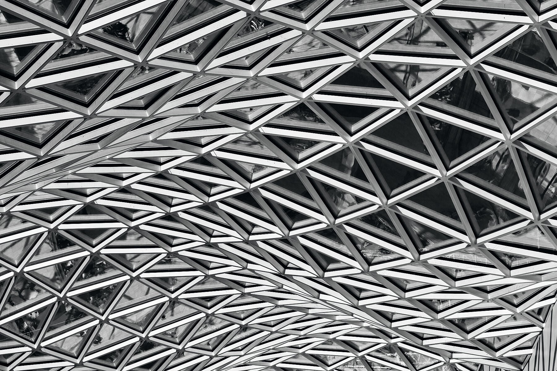 Elegant black and white, fine art image of the Westfield Shopping Centre in London by architects Knippers Helbig by the photographic artist, Anthony Weller.