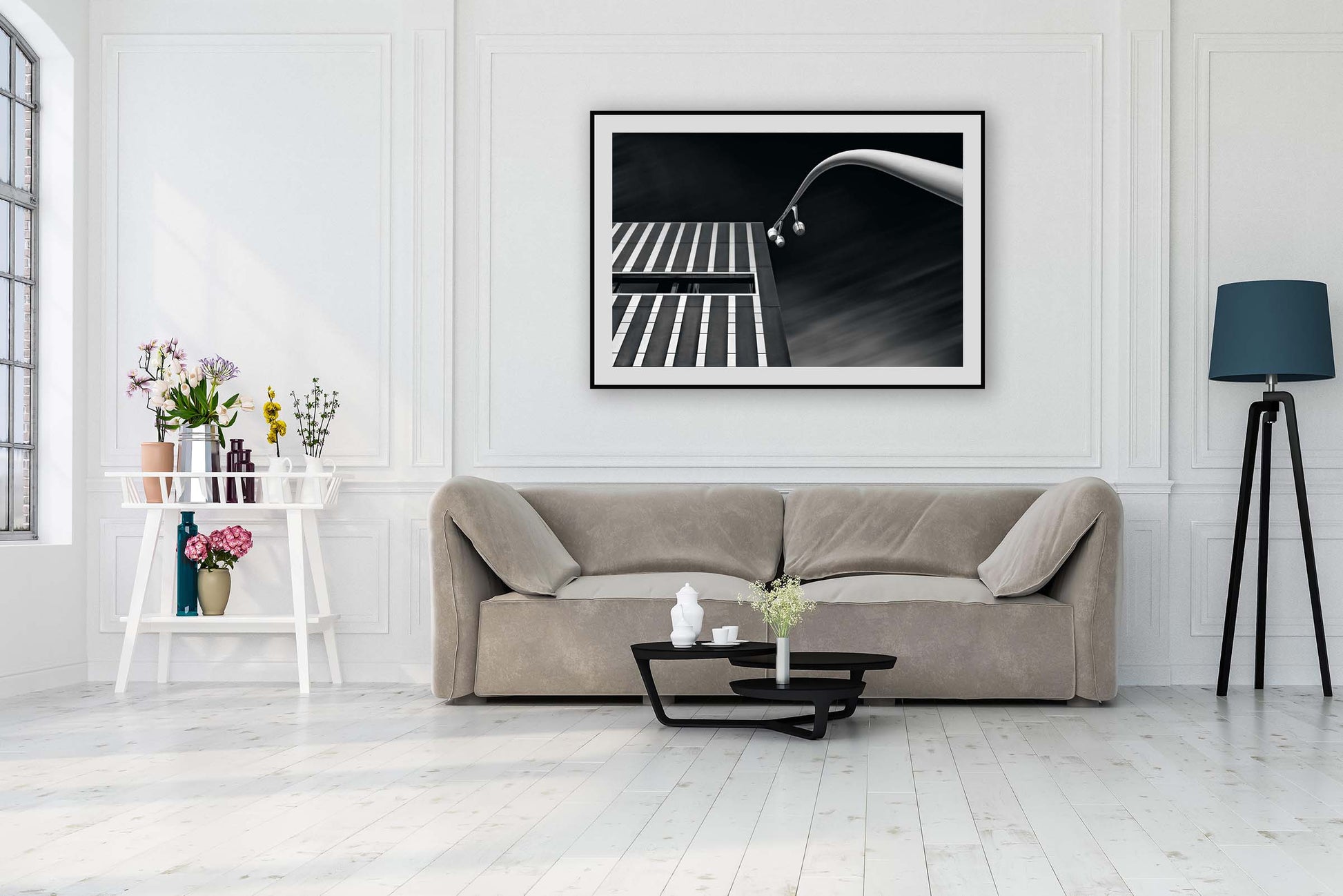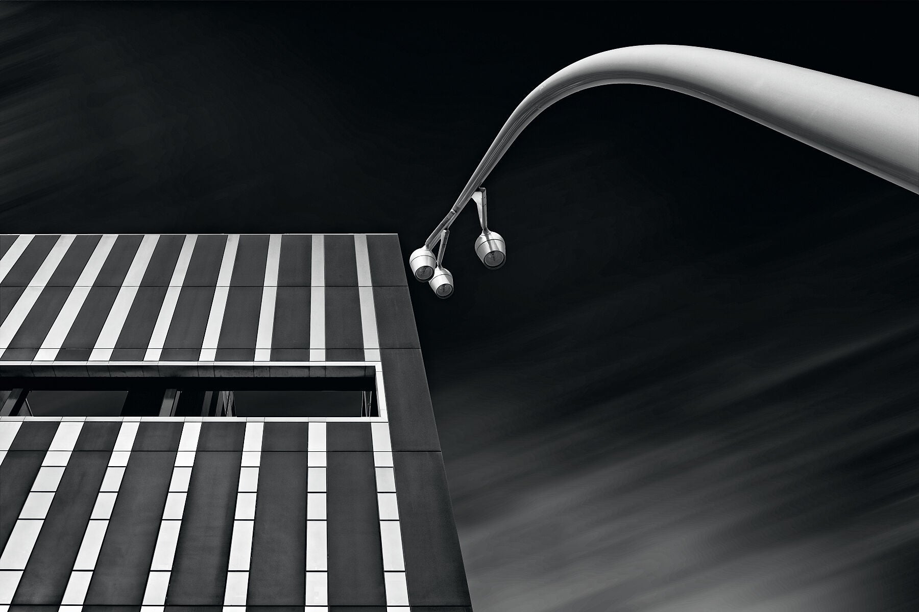 Abstract black and white, fine art image of the Corby Cube designed by Hawkins-Brown by the photographic artist, Anthony Weller