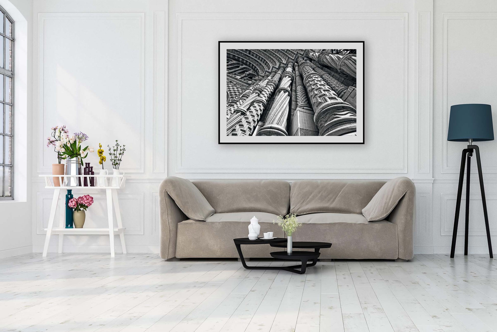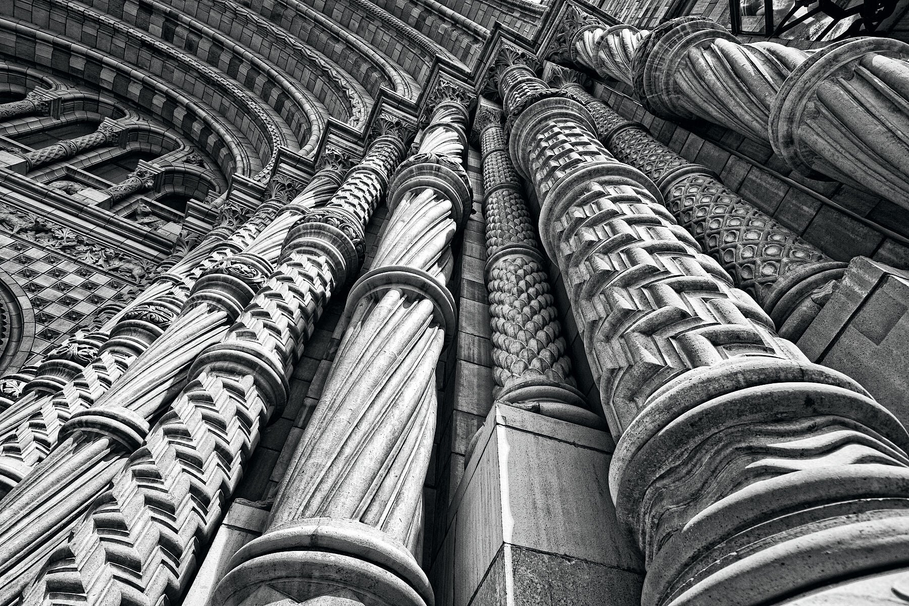 Eye-catching black and white, fine art image of the Natural History Museum in London by the photographic artist, Anthony Weller