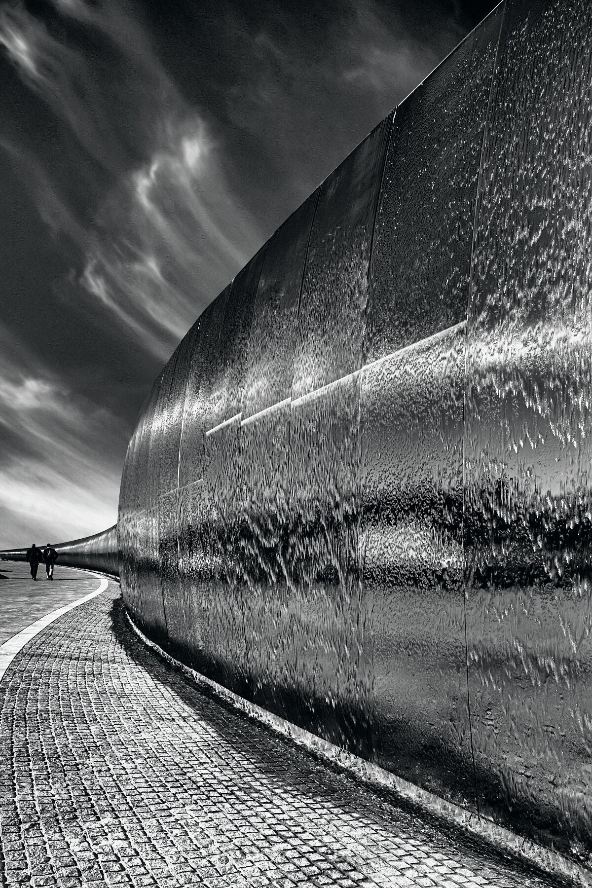 Dramatic black and white, fine art image of the 'Blade' water sculpture in Sheffield by the photographic artist, Anthony Weller