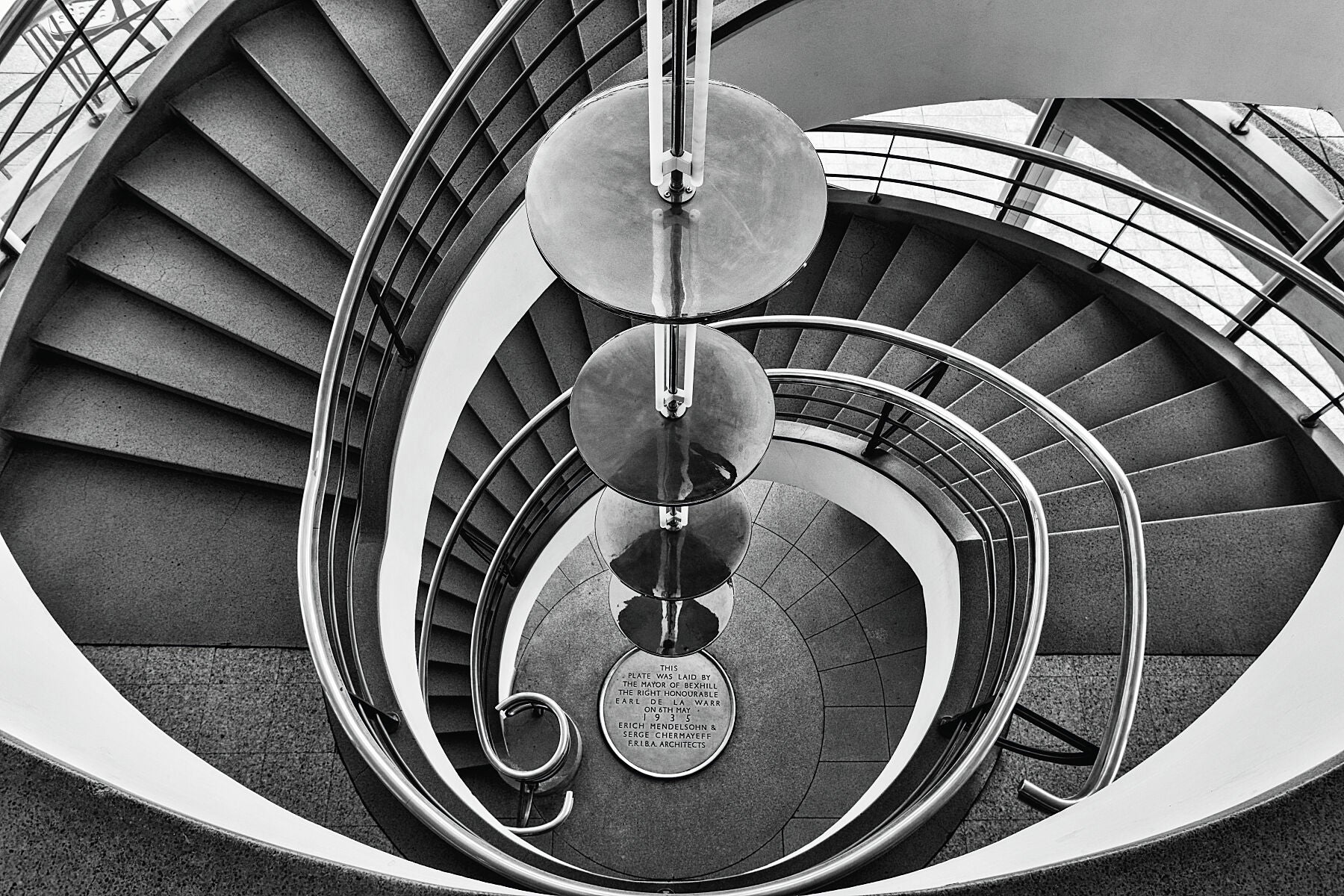 Elegant black and white, fine art image of the De La Warr Pavilion designed by the architect Erich Mendelsohn by the photographic artist, Anthony Weller