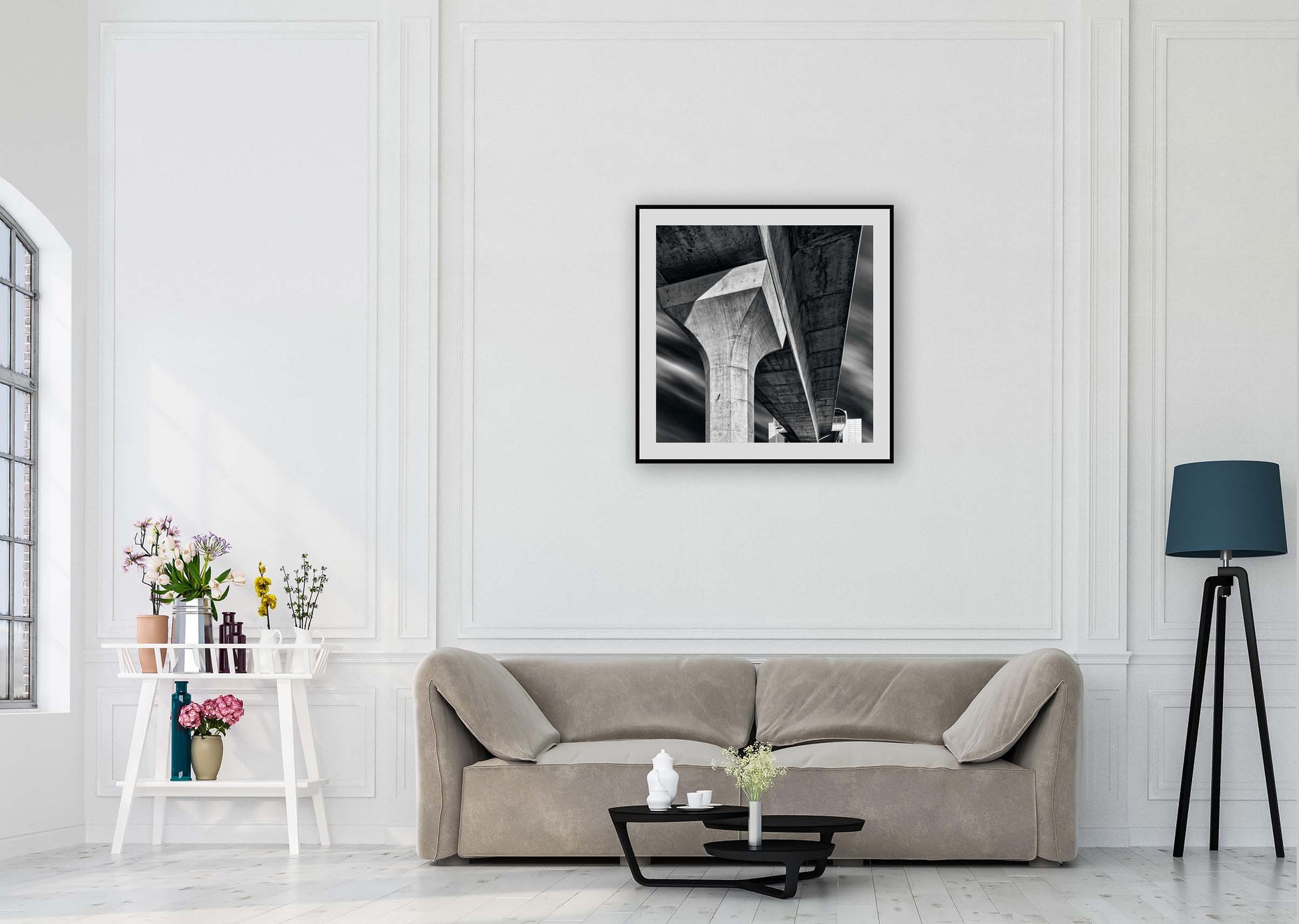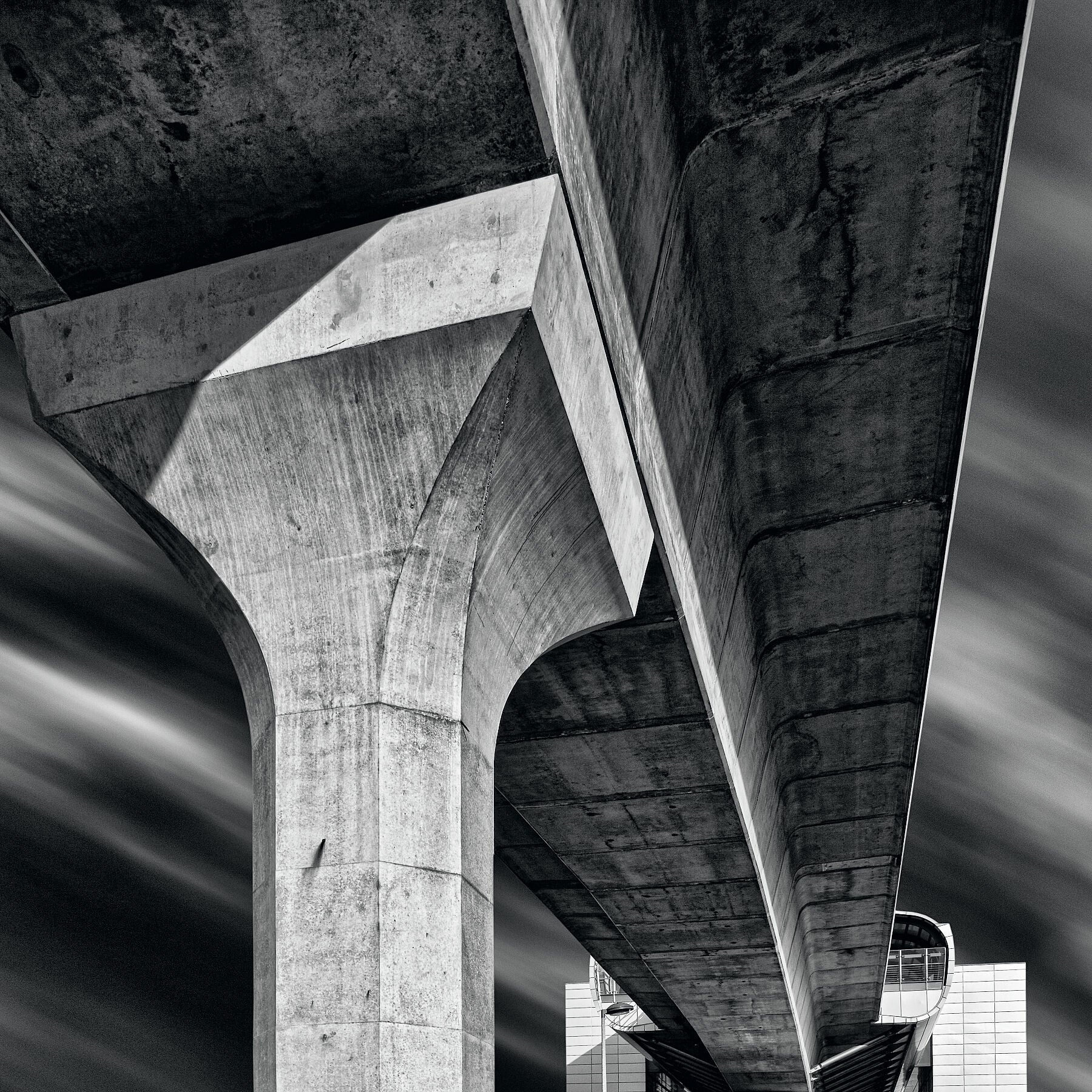 Dramatic black and white, fine art image of the Pontoon Dock Station in London's Docklands by the photographic artist, Anthony Weller