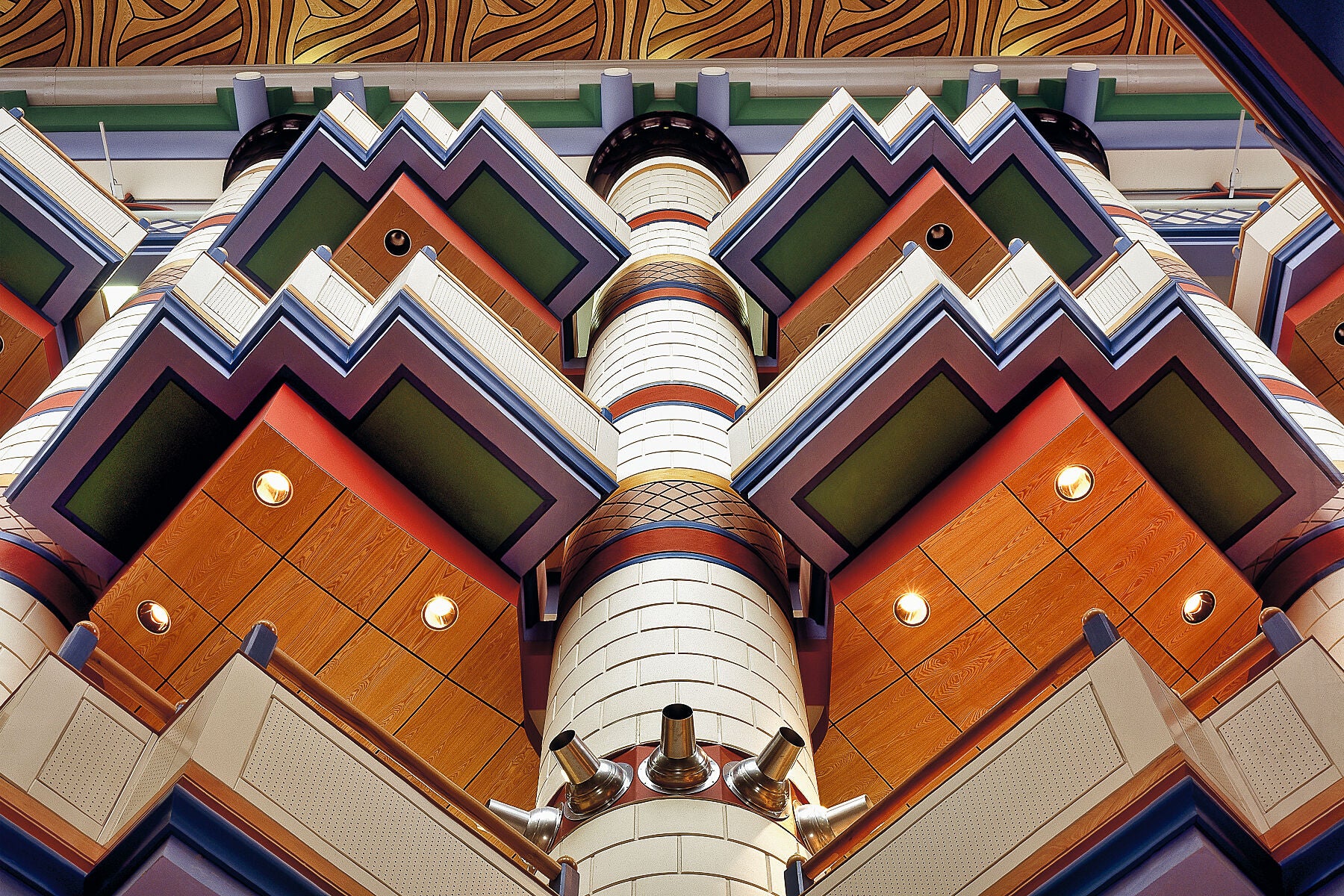 Beautiful colour, fine art image of the Judge Institute in Cambridge by architect John Outram by the photographic artist, Anthony Weller
