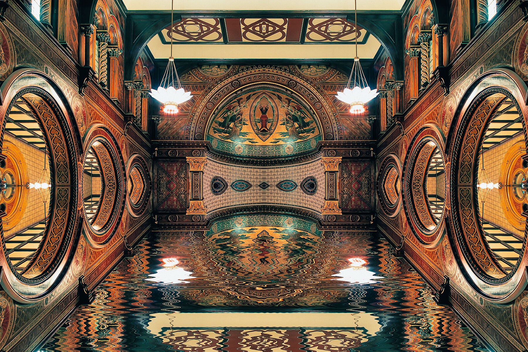 Surreal colour, fine art image of the Kings College Chapel in London by the photographic artist, Anthony Weller