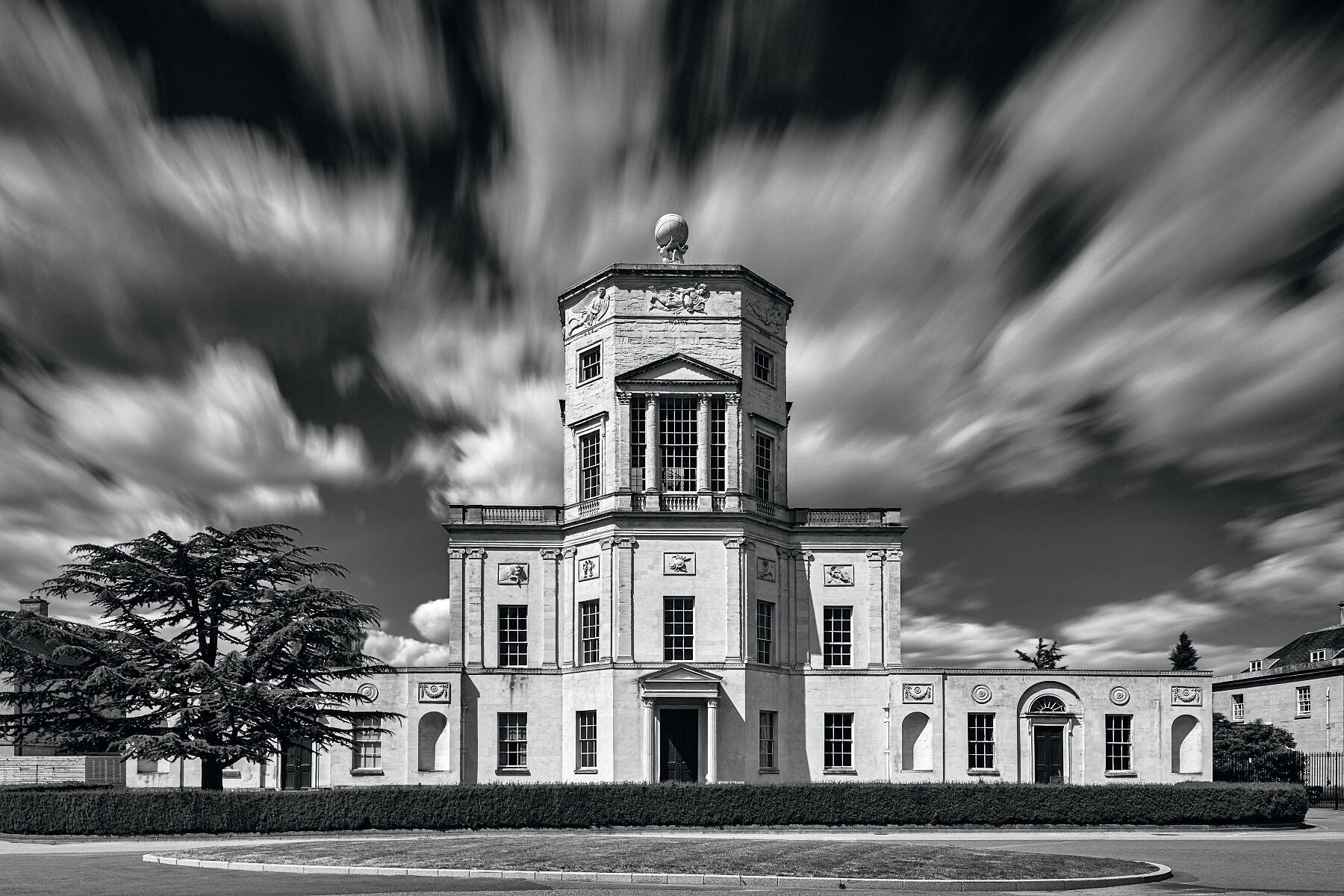 Beautiful black and white, fine art image of the Radcliffe Observatory, Cambridge by the photographic artist, Anthony Weller